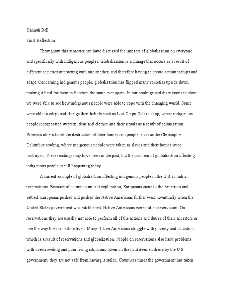 Get a custom sample essay written according to your requirements urgent 3h delivery guaranteed example of reflection paper. Globalization has influenced the world in many different ways, like culture, economy and politics.